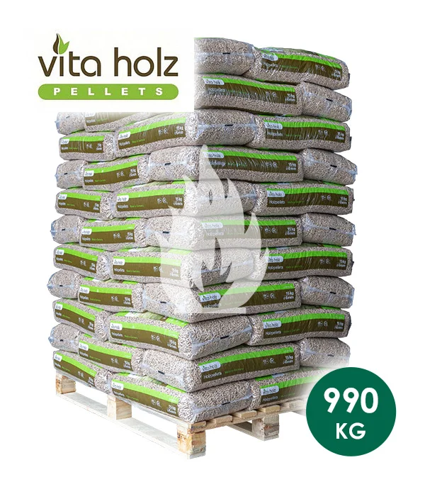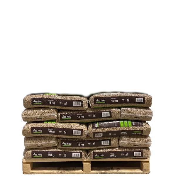 Vita Holzs has become a well-known brand in the Dutch market in recent years. Many households in Germany have been heating completely CO2-neutral on Vita Holz pellets for years. In fact, Vita Holz is one of the largest producers of wood pellets in Europe. The wood pellets are made from 100% untreated 100% softwood from sustainably managed forests (PEFC) and comply with EN+A1 certification. These premium wood pellets ensure a longer lifespan and less maintenance of your pellet stove. The pellets are made of 100% softwood and ensure a beautiful, clean flame and a high efficiency of your stove. The stove window will stay clean longer due to efficient combustion and few ash residues will remain in your burner pot. Order your Vita Holz pellets before 12:00 and they will be shipped the same day. Neatly delivered by a friendly driver with a truck with tailgate and electric pump truck. Is your address only accessible with a small truck? The bags of these wood pellets can be stored in dry storage for a long time. Each full pallet of Vita Holz pellets contains 66 bags of 15 kg.